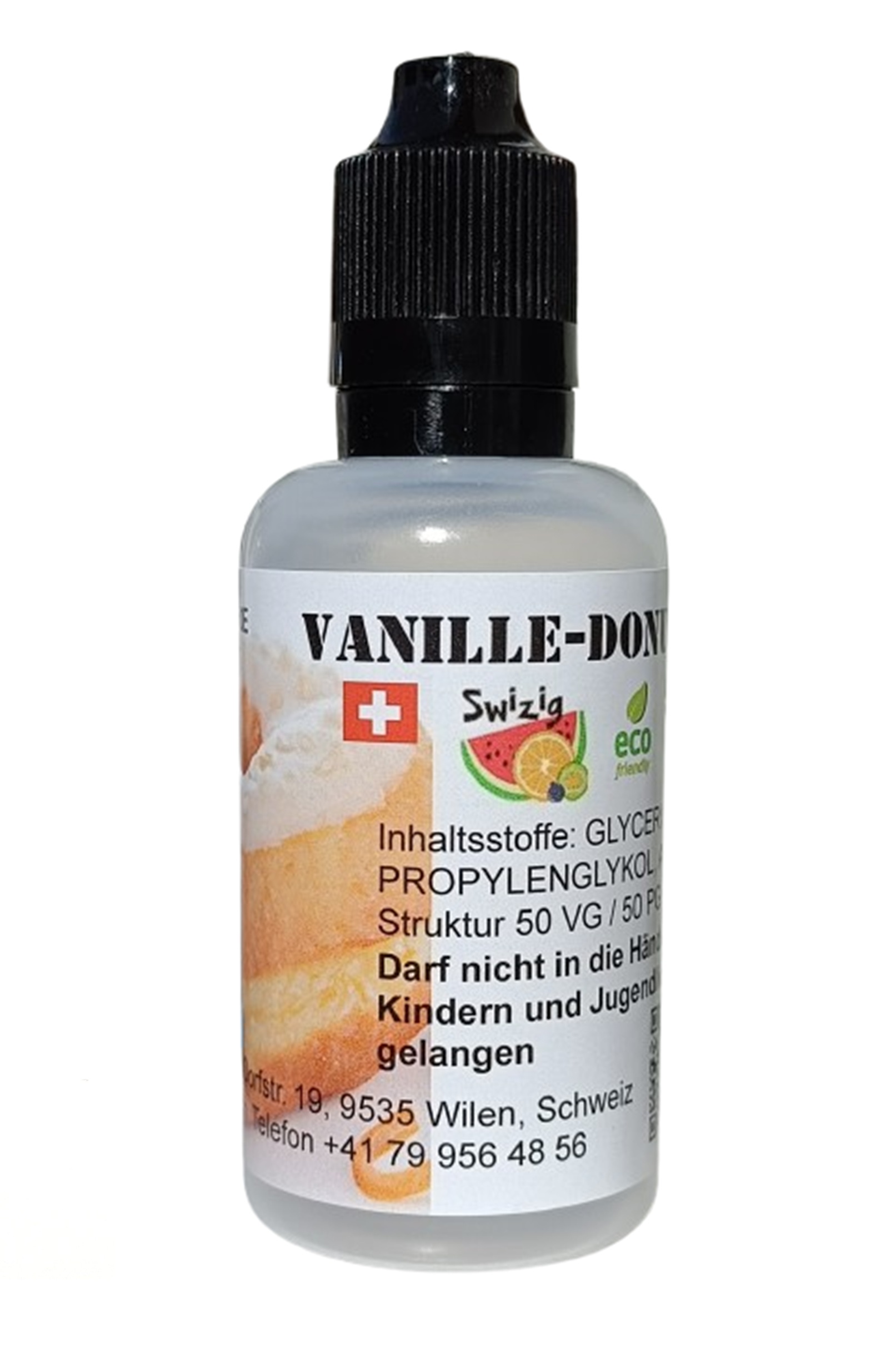 Unser Vanille-Donuts Liquid vereint die zarte Süsse von Vanille mit einem Hauch frischem Gebäck – genau der richtige Genuss für alle, die es süss und cremig mögen