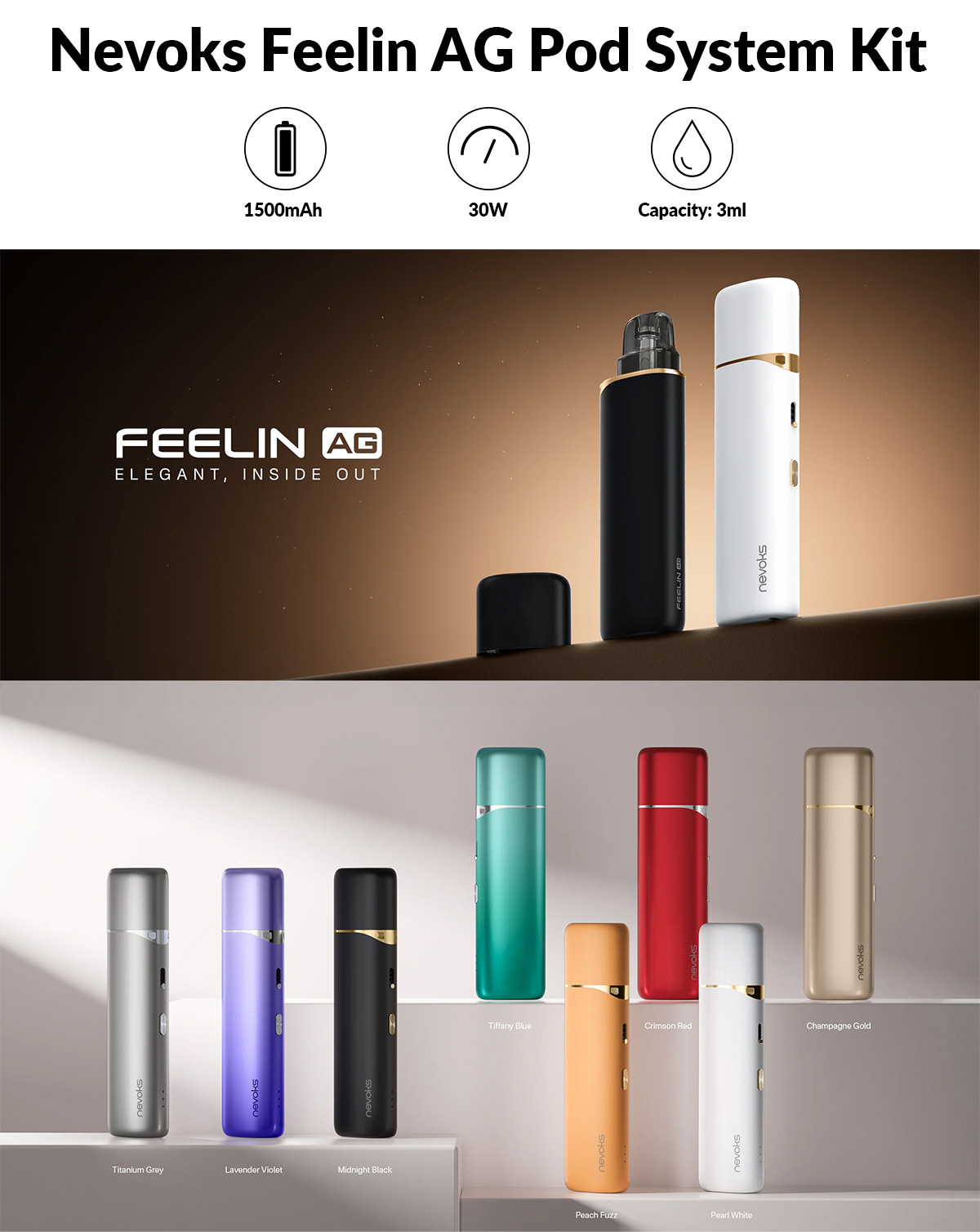 Feelin AG 1500mAh Podsystem – Nevoks – Pastellorange, Feelin AG 1500mAh Podsystem – Nevoks – Tiffany Blue, Feelin AG 1500mAh Podsystem – Nevoks – Midnight Black, Ersatz-Pods Feelin AG A1 Pods 3er Paket in 0.8 Ohm, Ersatz-Pods Feelin AG A1 Pods 3er Paket in 1.2 Ohm