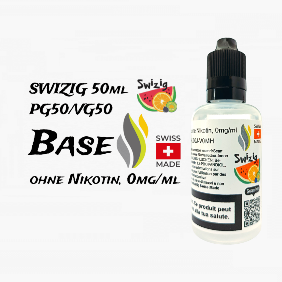 50ml SWIZIG PG50/VG50 Base ohne Nikotin. Perfekt zum auffüllen von Longfills